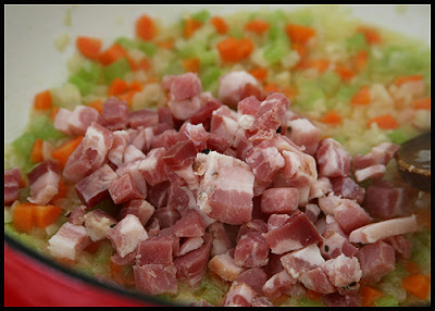 Step 3: Add in the pancetta and cook about 10-15 minutes. I always like to make sure the pieces aren't too big.