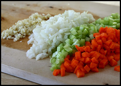Step 1: Mise-en-place - Get all your ingredients organized, chopped and ready. Make sure all soffrito items are about the same size for even cooking. You'll need a good sized stock pot for this as it makes quite a bit.