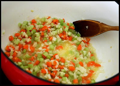 Step 2: Melt butter and olive oil over medium heat. Add the soffrito and add a healthy pinch of salt and cook until soft (about 5-8 minutes).